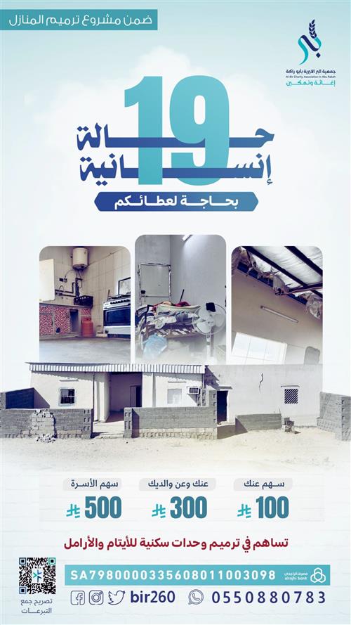 توفير وترميم منازل آمنه ودافئة لهم عبر ترميم شامل يحفظ الكرامة ويعيد الطمأنينة.